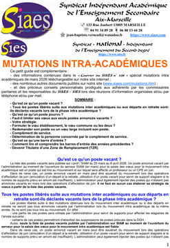 - Si vous participez au mouvement intra académique dans l'académie d'Aix-Marseille, lisez l'encart spécial mutations intra académiques contenu dans le "Courrier du SIAES" n° 108, le guide du SIAES, le Bulletin Académique et les informations disponibles ci-dessous.