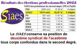 Le SIAES à votre service : Les élus en CAPA et responsables du SIAES, DEUXIEME SYNDICAT DE L'ACADEMIE, sont à la disposition des adhérents pour les conseiller et suivre leur dossier.