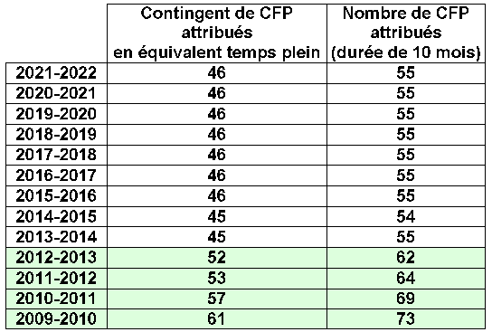 L'administration envisageait de modifier les modalités d'octroi des congés de formation professionnelle (CFP) ainsi que la durée du congé pour les CFP accordés au titre de l'année scolaire 2022-2023. En effet, en l’absence de cadre national, chaque académie est libre de définir son propre barème et ses propres critères pour l’attribution des CFP. Après avoir présenté son projet aux organisations syndicales et avoir entendu les arguments du SIAES, l'administration a pris conscience de la complexité de la mise en oeuvre de son projet et de l’absence de pertinence de la plupart de ses propositions qui ne permettent pas de répondre aux besoins des personnels. L’administration a finalement décidé de reconduire pour 2022-2023 le barème et les modalités en vigueur les années précédentes. Dans l’académie d’Aix-Marseille, l’attribution des congés de formation professionnelle est exclusivement le résultat d’un classement des demandeurs en fonction d’un barème composé de trois éléments (antériorité de la demande sur 20 points, âge du demandeur sur 30 points, grade et échelon du demandeur sur 30 points). A égalité de points, l’âge sert de critère de départage au profit du plus âgé. Le barème maximal (80 points) ne peut être atteint qu’après cinq demandes consécutives pour un candidat ayant entre 40 et 50 ans et ayant atteint le 8ème échelon de la classe normale. La nature de la formation demandée n’est pas un critère pris en compte. L’administration ne recueille pas l’avis du chef d’établissement ou de l’inspecteur pédagogique. Bien que le CFP dure 12 mois, dans l’académie d’Aix-Marseille, l’indemnité est versée pendant 10 mois. Cela permet au bénéficiaire de percevoir 100 % de son traitement en juillet - août et à l’administration de redistribuer les 2 mois d’indemnité restants. Cinq équivalents temps plein permettent l’attribution de l’indemnité à six personnes (6 CFP).