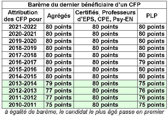L'administration ne renonce pas à son projet et a indiqué vouloir poursuivre les échanges avec les organisations syndicales en vue d'une éventuelle modification du barème et des modalités d'attribution des CFP au titre de l'année scolaire 2023-2024. Les élus du SIAES participeront activement aux groupes de travail convoqués sur ce sujet par l'administration et défendront les intérêts des personnels. Lors des précédentes réunions, le SIAES a systématiquement rappelé que l’importante liste d’attente, pour ne pas dire l’embouteillage (un tiers des candidats a le barème maximal), et la perte de sens qui en découle, résultent de la décision de l’administration de réduire graduellement les moyens alloués aux congés de formation professionnelle entre 2009 et 2014 (61 équivalents temps plein en 2009 ; 45 ou 46 équivalents temps plein selon les années depuis 2013). Cela a conduit à l’augmentation de la barre - qui est devenue équivalente au barème maximal (80 points) - pour les professeurs agrégés et les professeurs de lycée professionnel et à l’augmentation du nombre de demandeurs ayant le barème maximal dans le groupe 2 (qui réunit les professeurs certifiés, les professeurs d’EPS, les CPE et les Psy-EN). L’âge étant le critère de départage utilisé à égalité de barème, cela s’est traduit par une augmentation de l’âge du dernier bénéficiaire d’un CFP dans le groupe 2 (environ 6 mois par campagne). Le dernier bénéficiaire d’un CFP au titre de l’année scolaire 2012-2013 dans le groupe 2 avait 42 ans et 3 mois. Le dernier bénéficiaire d’un CFP au titre de l’année scolaire 2021-2022 dans le groupe 2 avait 47 ans et 7 mois. A ce rythme, si rien n’est fait par l’administration, d’ici deux ans seuls les demandeurs ayant 49 ans et 80 points pourront obtenir un CFP. En effet, la part du barème liée à l’âge du demandeur diminue à compter de 50 ans. Ce recul de l’âge d’obtention du CFP pose également de nombreux problèmes. - L’envie ou le besoin de bénéficier d’un CFP est, pour une partie des professeurs et des CPE, moins importante à ce stade de la carrière. - Par ailleurs, bénéficier d’un CFP lorsque l’on est au sommet de la classe normale, ou à la hors classe, ou à la classe exceptionnelle, représente un sacrifice financier très important a fortiori dans le contexte économique actuel. Le montant de l’indemnité mensuelle forfaitaire est égal à 85 % du traitement brut et de l’indemnité de résidence afférents à l’indice détenu au moment de la mise en congé de formation. Cette indemnité est plafonnée et ne peut excéder le traitement brut et l’indemnité de résidence afférents à l’indice brut 650 (= indice majoré 543). L’échelon 4 de la classe normale des professeurs agrégés correspond à l’indice majoré 542. L’échelon 8 de la classe normale des professeurs certifiés (EPS, PLP, CPE) correspond à l’indice majoré 557. Au dessus de ces échelons, les bénéficiaires d’un CFP perçoivent une indemnité dont le montant est inférieur à 85 % du traitement brut afférent à l’indice qu’ils détiennent. La retenue pour pension civile (calculée sur l’intégralité du traitement brut), la CRDS, la CSG et la contribution exceptionnelle de solidarité sont soustraits à l’indemnité.