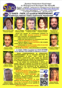 Deuxième syndicat de l'académie d'Aix Marseille tous corps confondus. Syndicat indépendant Académique, National et Fédéré Le SIAES-SIES/FAEN, LE syndicat indépendant ! Elections professionnelles : 27 novembre - 4 décembre 2014