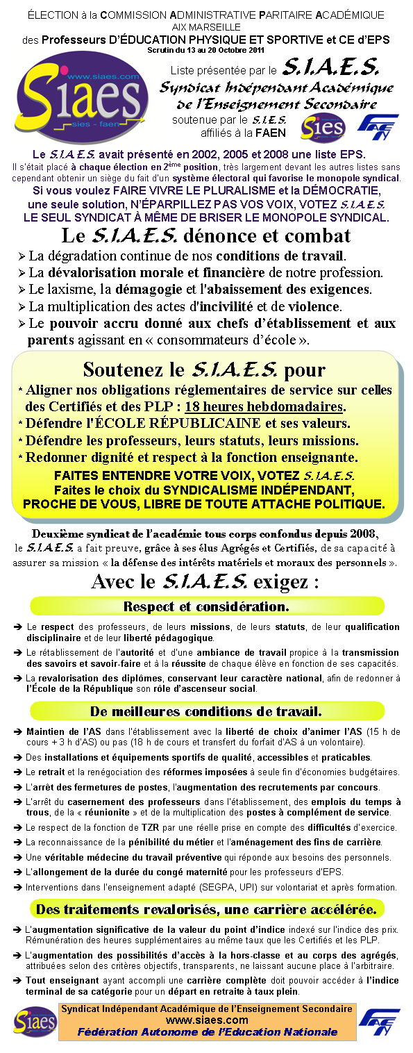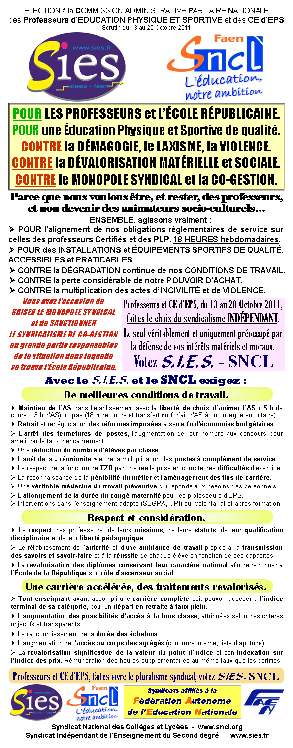 Profession de foi académique (CAPA) 2011 / Profession de foi nationale (CAPN) 2011