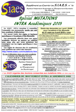 - Si vous participez au Mouvement Intra Académique dans l'académie d'Aix Marseille, lisez l'encart spécial Mutations Intra Académiques contenu dans le "Courrier du SIAES" n° 76, le guide du SIAES, le Bulletin Académique et les informations disponibles ci-dessous.
