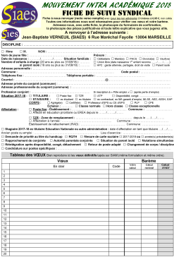 - Responsable stagiaires (tous corps) : Jean-Baptiste VERNEUIL jean-baptiste.verneuil@wanadoo.fr 04 91 34 89 28 / 06 80 13 44 28 Bulletin d'adhésion. La cotisation court sur 365 jours. En adhérant en juin 2018, vous serez adhérent(e) jusqu'en juin 2019. haut page AMIENS Période d'accès sur le serveur siam pour la saisie des voeux : informations publiées prochainement Site du Rectorat : http://www.ac-amiens.fr haut page BESANÇON Période d'accès sur le serveur siam pour la saisie des voeux : informations publiées prochainement Site du Rectorat : http://www.ac-besancon.fr haut page BORDEAUX Période d'accès sur le serveur siam pour la saisie des voeux : du 13 mars au 26 mars 2018 Site du Rectorat : http://www.ac-bordeaux.fr GUIDE MUTATIONS INTRA Répertoire des établissements ANNEXE 1 : conseil information mobilité ANNEXE 2 : principales dates à retenir ANNEXE 3 : pièces justificatives ANNEXE 4 : demande de modification de barème ANNEXE 5 : fiche récapitulative des bonifications ANNEXE 6 : demande de temps partiel ANNEXE 7 : fiche de candidature à un poste REP+ ANNEXE 8 : prise en compte des situations de handicap ANNEXE 9 : organigramme de la DPE ANNEXE 10 : liste des établissements centralisateurs haut page CAEN Période d'accès sur le serveur siam pour la saisie des voeux : du 19 mars au 6 avril 2018 Site du Rectorat : http://www.ac-caen.fr Note de service et annexes Carte des groupements de communes Répertoire académique des établissements (établissements, communes, groupes de communes, zones de remplacement) haut page CLERMONT Période d'accès sur le serveur siam pour la saisie des voeux : du 19 mars au 3 avril 2018 Site du Rectorat : http://www.ac-clermont.fr CirculaireAnnexes : Eléments de classement des demandes Pièces à fournir avec la confirmation des demandes Carte des zones de remplacement Guide des mesures de carte scolaire Détail des groupements de communes Autres informations haut page CORSE Période d'accès sur le serveur siam pour la saisie des voeux : du 15 mars au 2 avril 2018 Site du Rectorat : http://www.ac-corse.fr Circulaire Eléments du barème Annexes partie 1 Annexes partie 2 haut page CRÉTEIL Période d'accès sur le serveur siam pour la saisie des voeux : du 14 au 29 mars 2018 Site du Rectorat : http://www.ac-creteil.fr Circulaire académique Arrêté rectoral Calendrier des opérationsFiche 1 : situations familiales Fiche 2 : les demandes au titre du handicap Fiche 3 : les mesures de carte scolaire Fiche 5 : les postes spécifiques académiques Fiche 7 : affectations en établissements classés Annexe 1 : synthèse des éléments de barème et pièces justificatives Annexe 2 : nomenclature des postes SPEA Annexe 3 : fiche de candidature : poste spécifique académique Annexe 4 : descriptif des zones de remplacements Annexe 5 : liste des groupements de communes et codes correspondants Annexe 6 : liste des établissements « REP+ » Annexe 7 : liste des établissements bénéficiant de l’action logement Annexe 8 : liste des établissements REP+, REP et politique de la ville Annexe 9 : formulaire de demande de mutation pour raisons médicales - handicap haut pagePériode d'accès sur le serveur siam pour la saisie des voeux : du 19 mars au 3 avril 2018 Site du Rectorat : http://www.ac-dijon.fr Arrêté rectoral Note de service rectorale et annexes AUTRES INFORMATIONS haut page GRENOBLE Période d'accès sur le serveur siam pour la saisie des voeux : du 12 mars au 28 mars 2018 Site du Rectorat : http://www.ac-grenoble.fr Circulaire et annexes AUTRES INFORMATIONS haut page GUADELOUPE Période d'accès sur le serveur siam pour la saisie des voeux : du 22 mars au 9 avril 2018 Site du Rectorat : http://www.ac-guadeloupe.fr Circulaire académique Annexes de la circulaire académique Arrêté rectoral haut page GUYANE Période d'accès sur le serveur siam pour la saisie des voeux : du 21 mars au 10 avril 2018 Site du Rectorat : http://www.ac-guyane.fr Circulaire et annexes haut page LILLE Période d'accès sur le serveur siam pour la saisie des voeux : informations publiées prochainement Site du Rectorat : http://www.ac-lille.fr haut page LIMOGES Période d'accès sur le serveur siam pour la saisie des voeux : saisie des voeux du 12 au 30 mars 2018 Site du Rectorat : http://www.ac-limoges.fr fiche n° 1 - barème intra académique fiche n° 2 - Calendrier des opérations de la phase intra fiche n° 3 - situation familiale fiche n° 5 bis - complément de service fiche n° 5 - mesure de carte scolaire fiche n° 6 - Education prioritaire fiche n° 7 - Dispositif et situation spécifiques fiche n° 8 - Affectation sur zone de remplacement (ZR) fiche n° 9 - mouvement spécifique académique fiche n° 11 - table d’extension