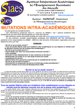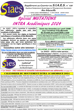 - Si vous participez au mouvement intra académique dans l'académie d'Aix-Marseille, lisez l'encart spécial mutations intra académiques contenu dans le "Courrier du SIAES" n° 100, le guide du SIAES, le Bulletin Académique et les informations disponibles ci-dessous.