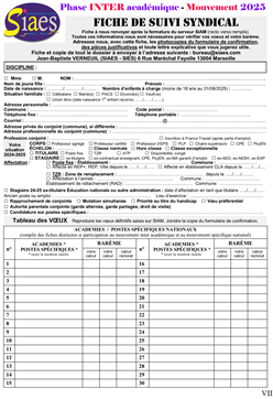 Les CONSEILS SYNDICAUX du SIAES - SIES vous seront extrêmement utiles pour établir vos vœux et définir la stratégie vous permettant d’obtenir le meilleur barème possible en vue de votre affectation à la rentrée 2025.