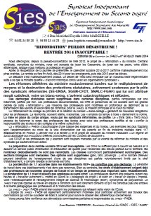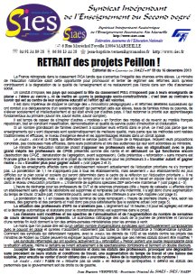 Nos revendications et nos positions vis à vis des réformes "Peillon -